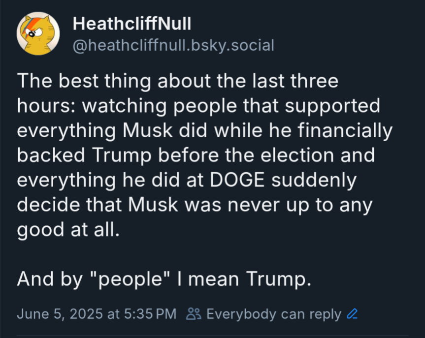 arrow-up11arrow-down1imageYou still can't sit with us, Elon.mander.xyzfossilesque@mander.xyzEnglish · 8 months agomessage-square0linkfedilink