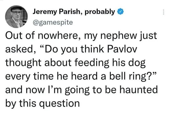 My god. We don’t deserve dogs if we are not adjusting Pavlov’s reputation for this.