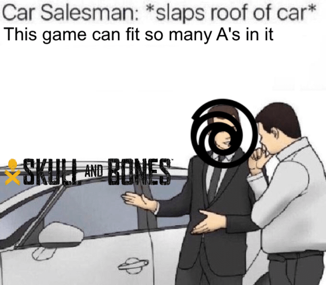 It’s a joke about how the head of Ubisoft referred to the game Skull And Bones as a “quadruple-A” game. The highest-budget games are often classified as “triple-A”, though people also tend to use the term as a way to indicate size or quality. By calling S&B an AAAA game he was signaling that it would be in a class of its own in terms of quality, most likely.