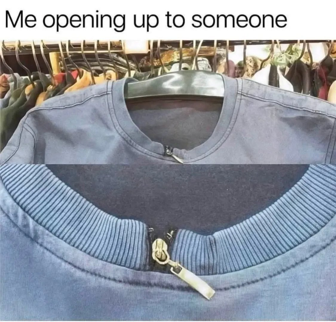 Picture: A sweater with a zipper barely big enough to cover the neckband, the zipper is down all of one little zipper notch and cannot go any further