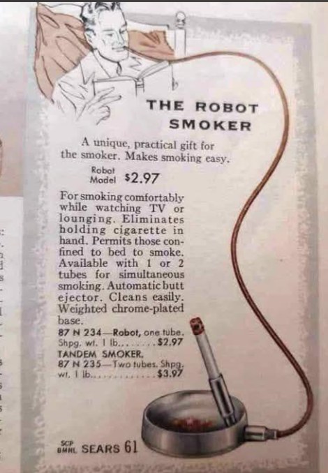 hookahwater cooled robot smoker“Permits those confined to bed to smoke.”