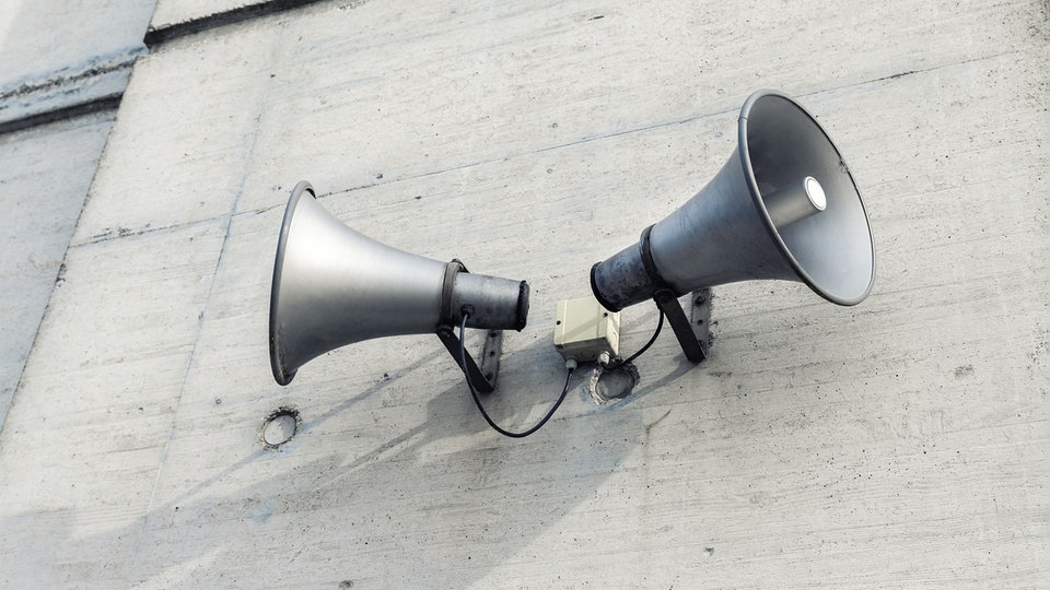 - Durchsagen über Lautsprecherwagen von Polizei oder Feuerwehr