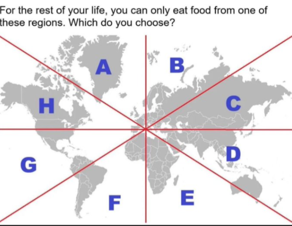 Also, D even gets the entire bay of Naples, in addition to the cuisines of 3-4 billion people. Anyone who wants anything from A can get anything from there in Oceania.