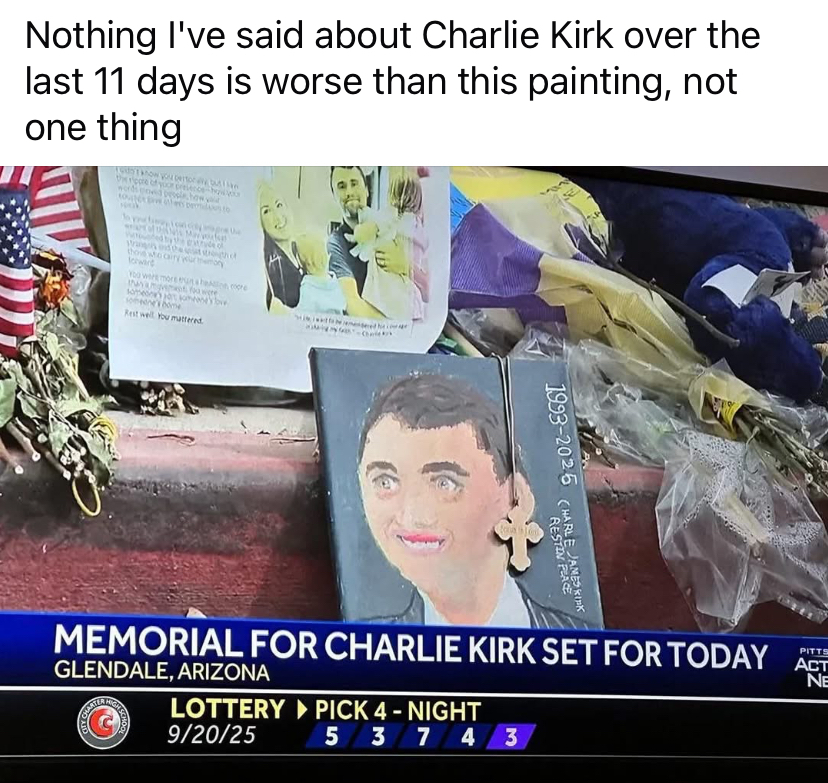 If the person who made this genuinely loved Charlie Kirk, then it is 100% they are a bigoted asshole. So you should not feel bad about mocking it in the slightest.