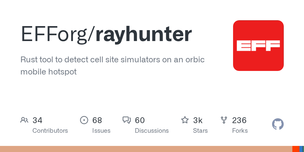 arrow-up1595arrow-down1external-linkSoftware by the Electronic Frontier Foundation that, when linked up with the correct hardware, becomes a Stingray for detecting Stingrays.github.comMTZ@lemmy.world to Technology@lemmy.worldEnglish · 1 month agomessage-square72linkfedilink