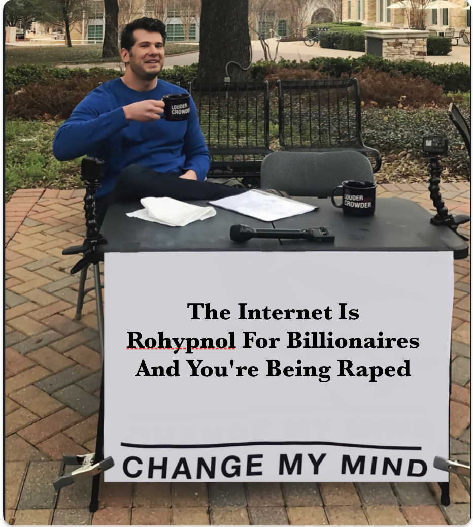 Not the internet, but billionaire controlled platforms. The Internet is one of the best tools ever for fighting against centralized power!