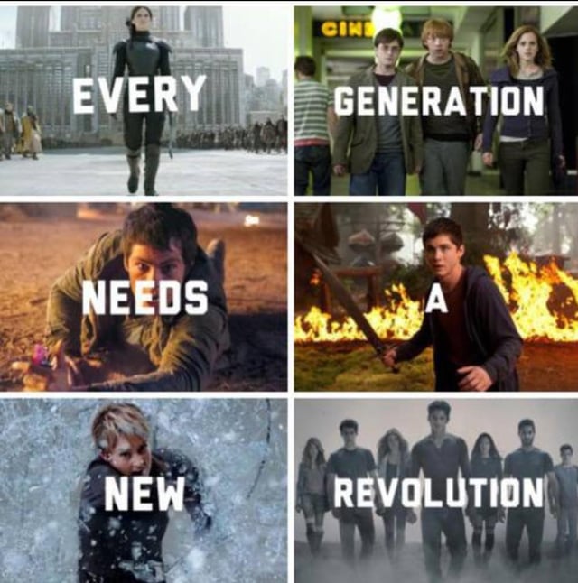 I see Katniss and Teen Wolf. I don’t really think of Teen Wolf when I think of overthrowing a government. Or Harry Potter for that matter.