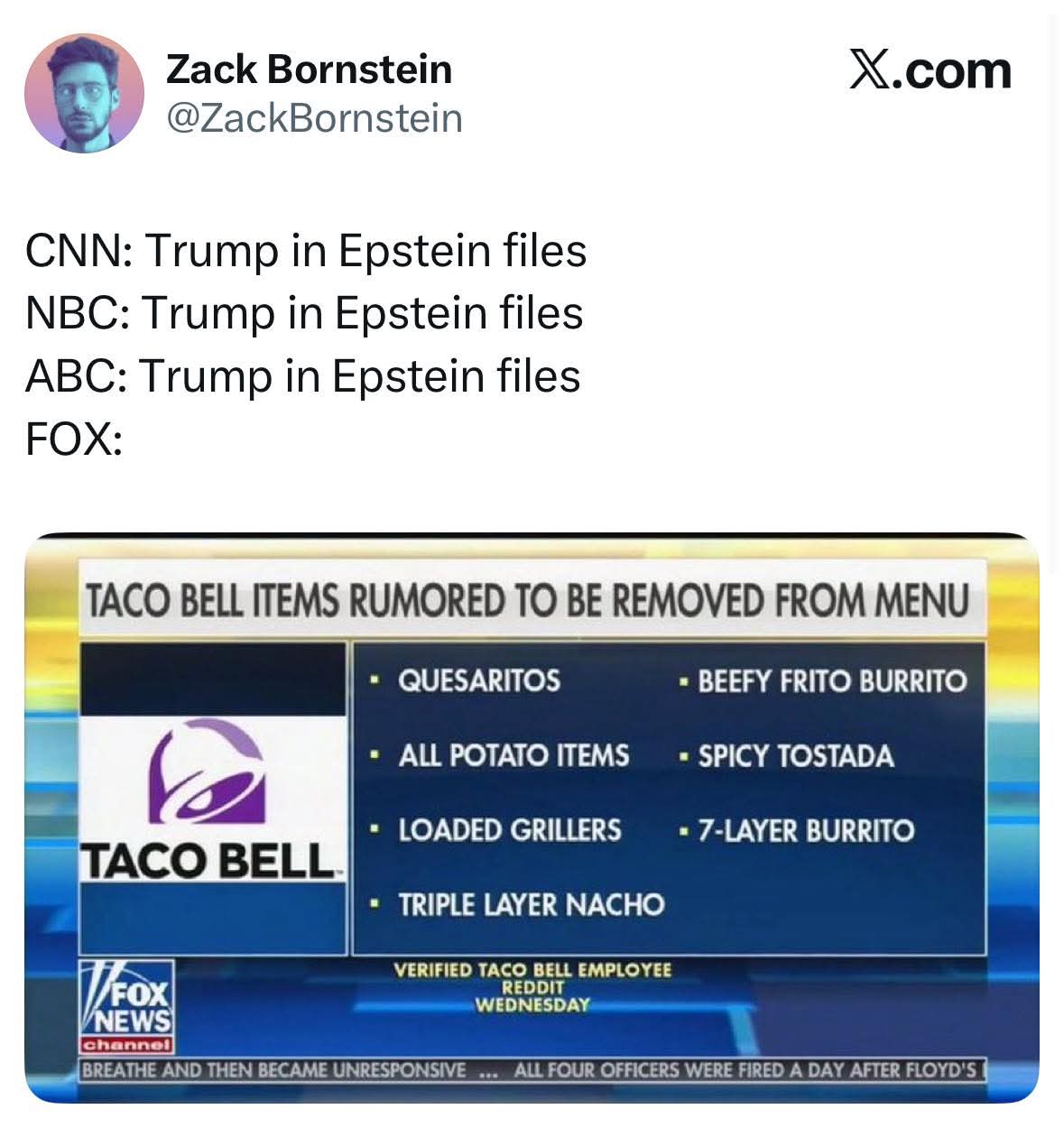MTZ@lemmy.world to Lemmy Shitpost@lemmy.world · 4 days agoFOX BREAKING NEWS ALERT!lemmy.worldimagemessage-square143linkfedilinkarrow-up11.33Karrow-down139