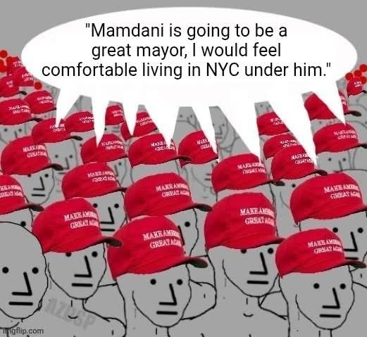 MTZ@lemmy.world to Lemmy Shitpost@lemmy.world · 8 days agoAfter Today's meeting where Trump fell in love with Mamdani, this is MAGA tomorrow morning.lemmy.worldimagemessage-square131linkfedilinkarrow-up1827arrow-down116