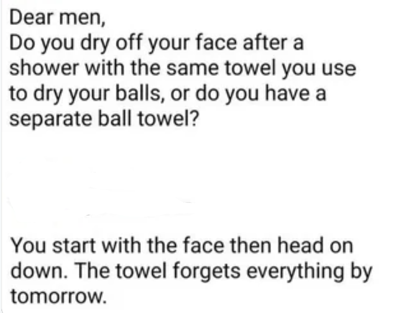 minus-squareNoiseColor @lemmy.worldlinkfedilinkarrow-up16arrow-down3·8 days agoI’m in the 'new towel every day" club.