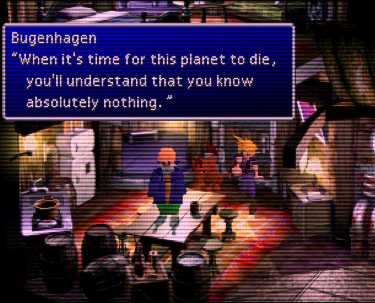 Rebirth lays the groundwork for Shinra starting a world war to generate more lifestream material (anguish of war victims) and “replenish the planet” so that they can pump out more Mako, it seems to be going pretty hardcore about Shinra being pure casual evil ultra imperialist capitalist, with the side of growing religious takeover with who believes or not in the Promised Land (and I forget what they call the huge materia in Rebirth - magister? Magnus?) as a land of infinite resource to sell as electricity. Scarlet salivating at the Weapons, literal harbingers of the end of the world, for the giant materia they’re made of is pretty on point.
