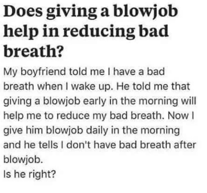Boyfriend is secretly gay and loves the smell of cock breath.