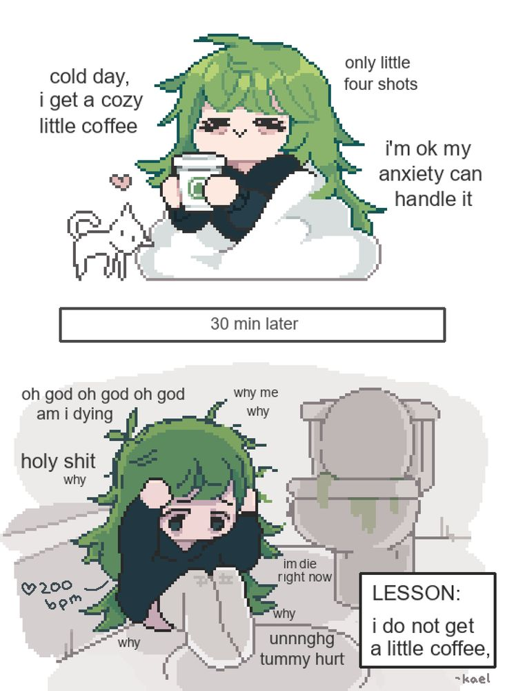 Yeah I can’t drink coffee anymore. Fucks up my entire day with intense stress ans a worn out feeling after a single cup. Though it seems to vary greatly. Every now and then I “forget” this and suffer again