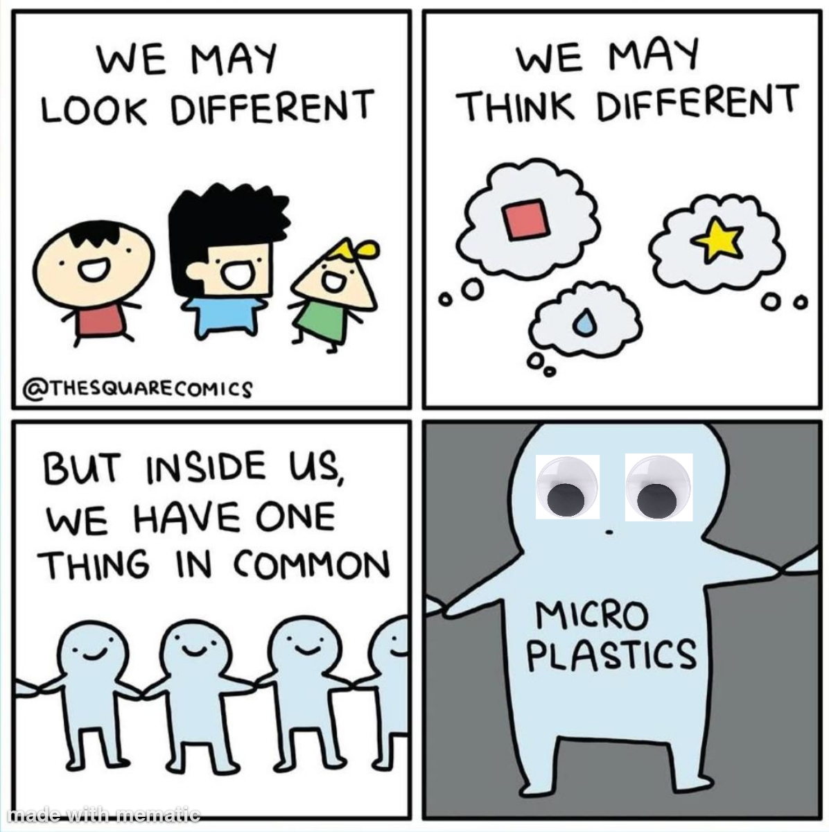 I work cleaning and examining aluminum parts. To clean them we use a grit blaster with plastic beads. Most other grit would be too hard to use on aluminum. As such, I regularly breath plastic dust. I embrace my fate. I am a child of the petroleum byproduct. I am a child of the modern era, an unholy chimera of meat and polymer.