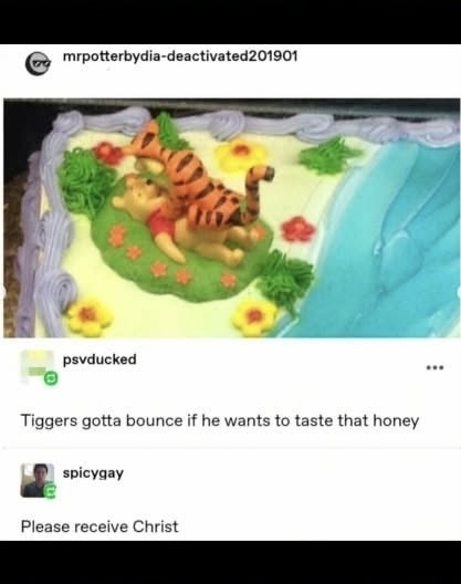 Tigger canonically doesn’t like honey. He just wants Pooh’s cock.
