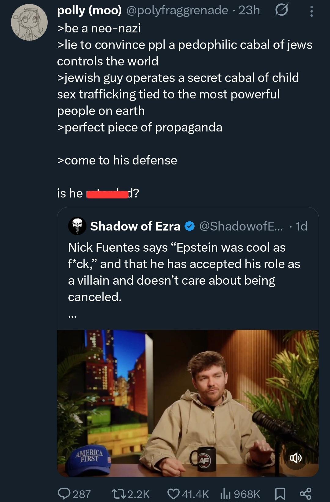 Fresh off of reading Either/Or and it’s clear to me that all Nazis and Nazi adjacent dumb fucks are aesthetes. Enjoy the ironic handle.
