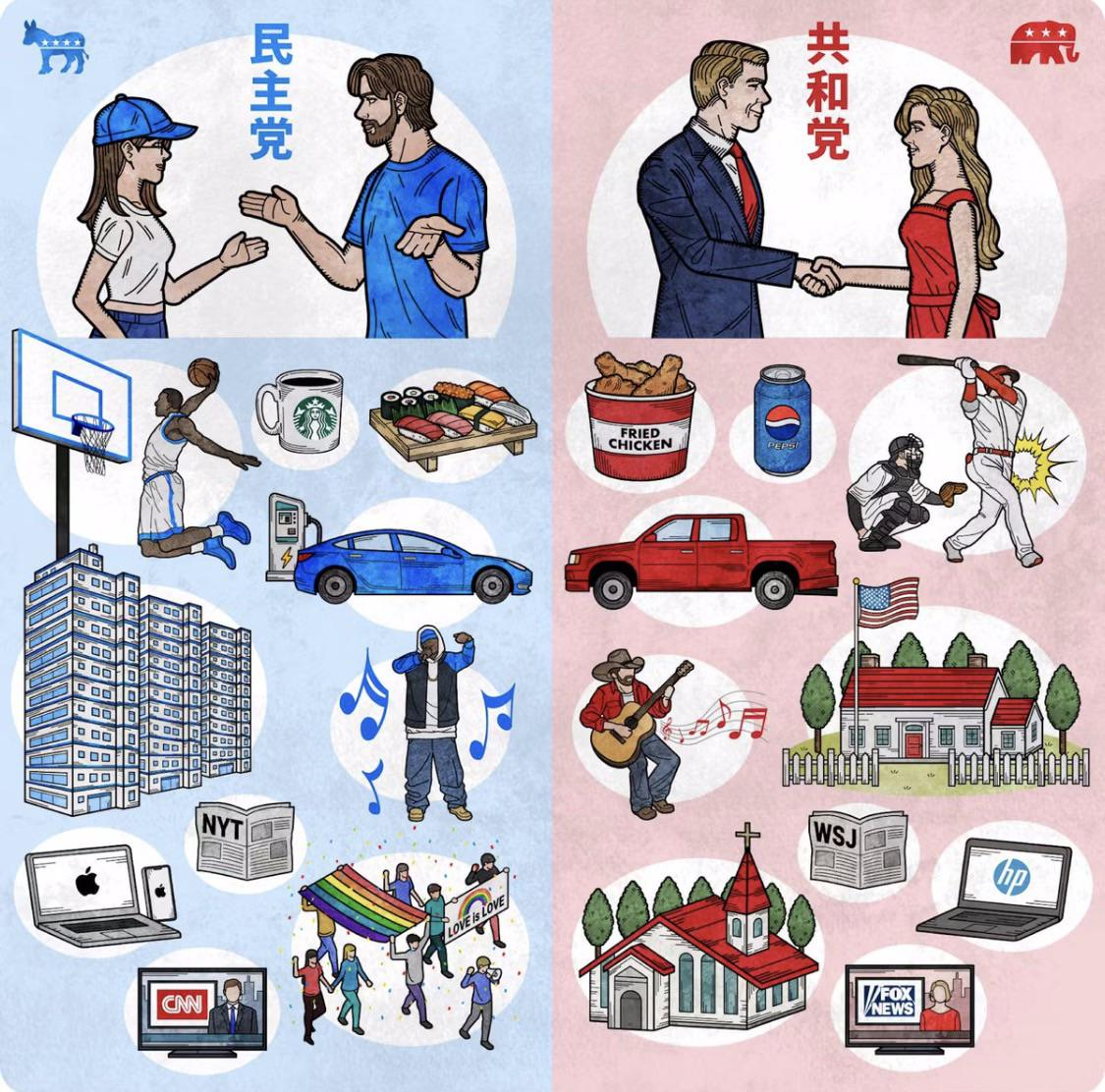 I agree this is their weakest comparison. I assume they were going with basketball=black people, baseball=apple pie. A more apt comparison, imo, would be conservatives watching sports while liberals watch TED Talks or something.