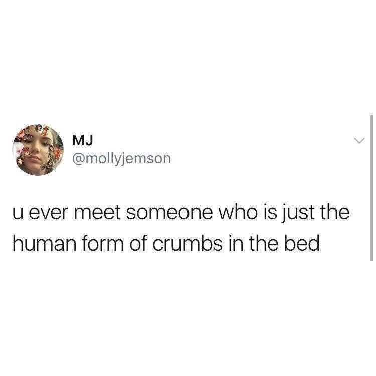I suspect if you were the equivalent of crumbs in the bed, you would not stop and consider if you were the crumbs in the bed.