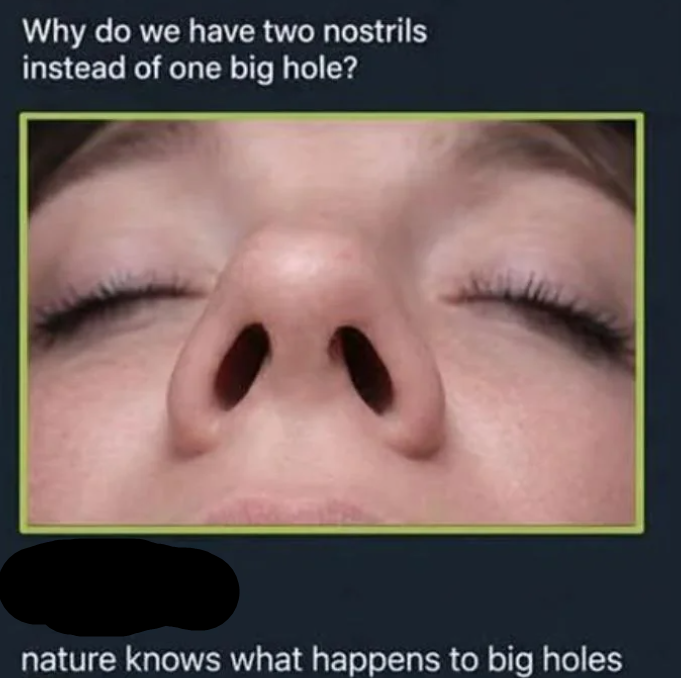 minus-squarelasta@piefed.worldlinkfedilinkEnglisharrow-up27·22 days agoWith enough cocaine usage, you can tear down the partition wall and have yourself a uninostril (not recommended).