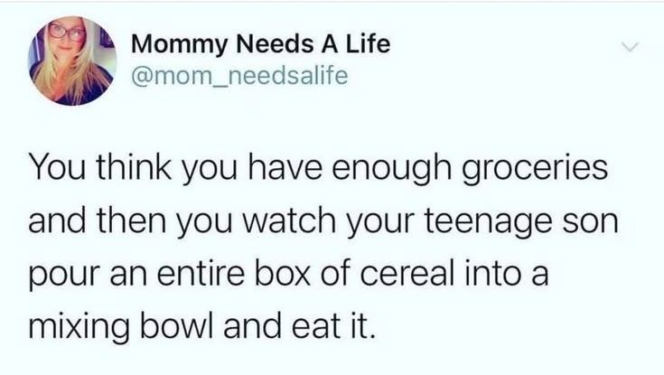 To be fair, my husband will just have 6 bowls of cereal in a row all of a sudden.