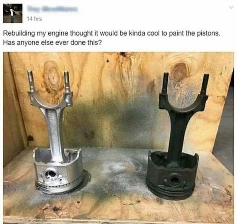Make sure to sand them first with a rough grit or the paint won’t stick. You can also add sugar to your gas tank to make your sick piston paint job super sweet.