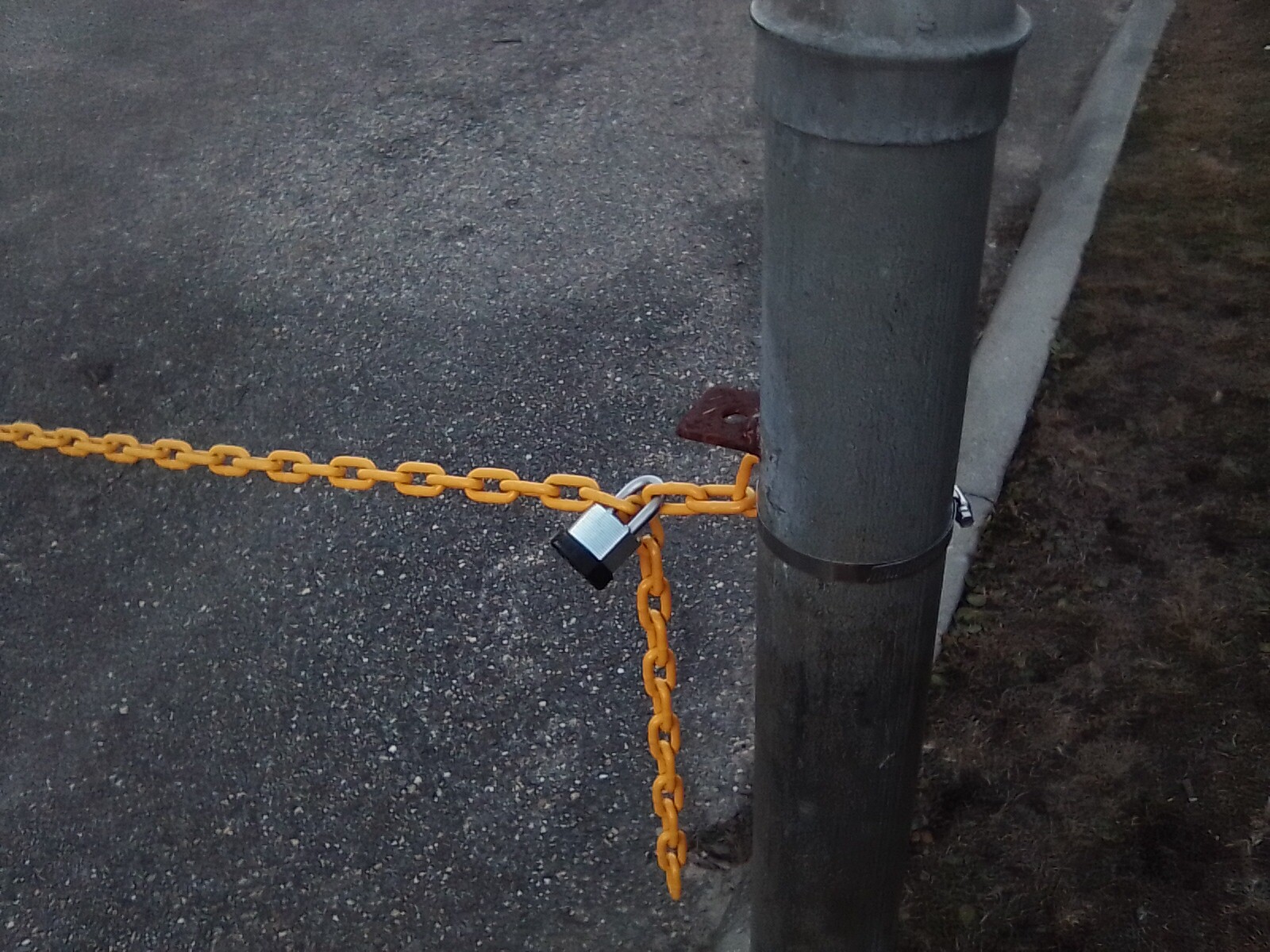 Something like this isn’t meant to provide real security, just discourage anyone from driving in or out of their lot after hours. If someone really wants in there, they can just step under or over the chain.