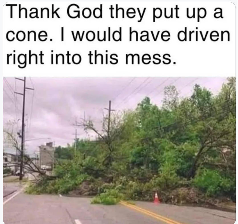 Ikr, imagine trying to drive around that one cone in the dark.