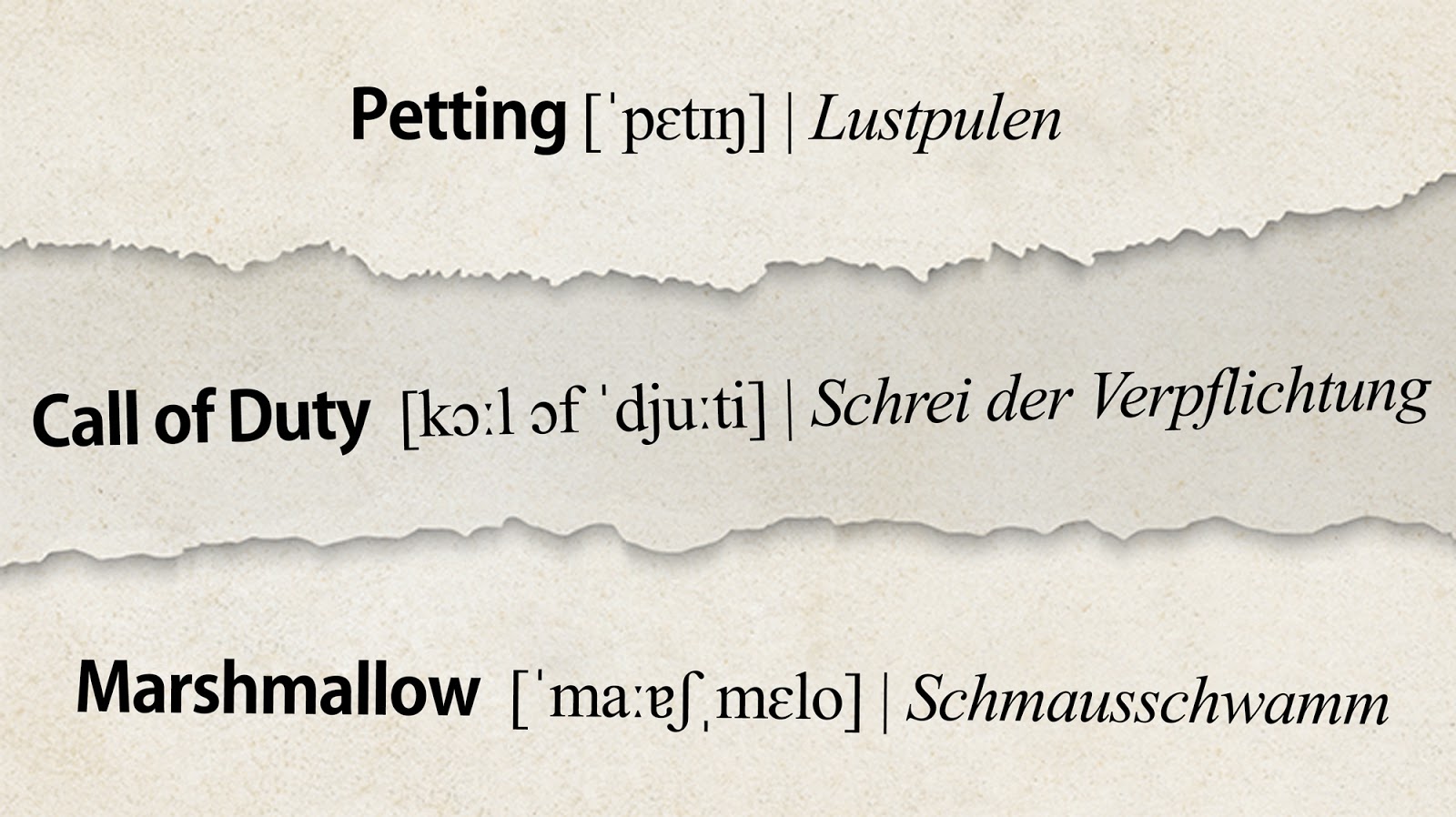 Es ist eine besorgniserregende Entwicklung: Unsere Sprache enthält immer mehr Wörter, die direkt aus dem Englischen stammen. Computer, Outsourcing, Interview – wenn es so weitergeht, bleibt bald kein einziges deutsches Wort mehr übrig. Um unsere schöne Sprache zu retten, haben wir 60 häufig verwendete Begriffe vom Englischen ins Deutsche übersetzt: