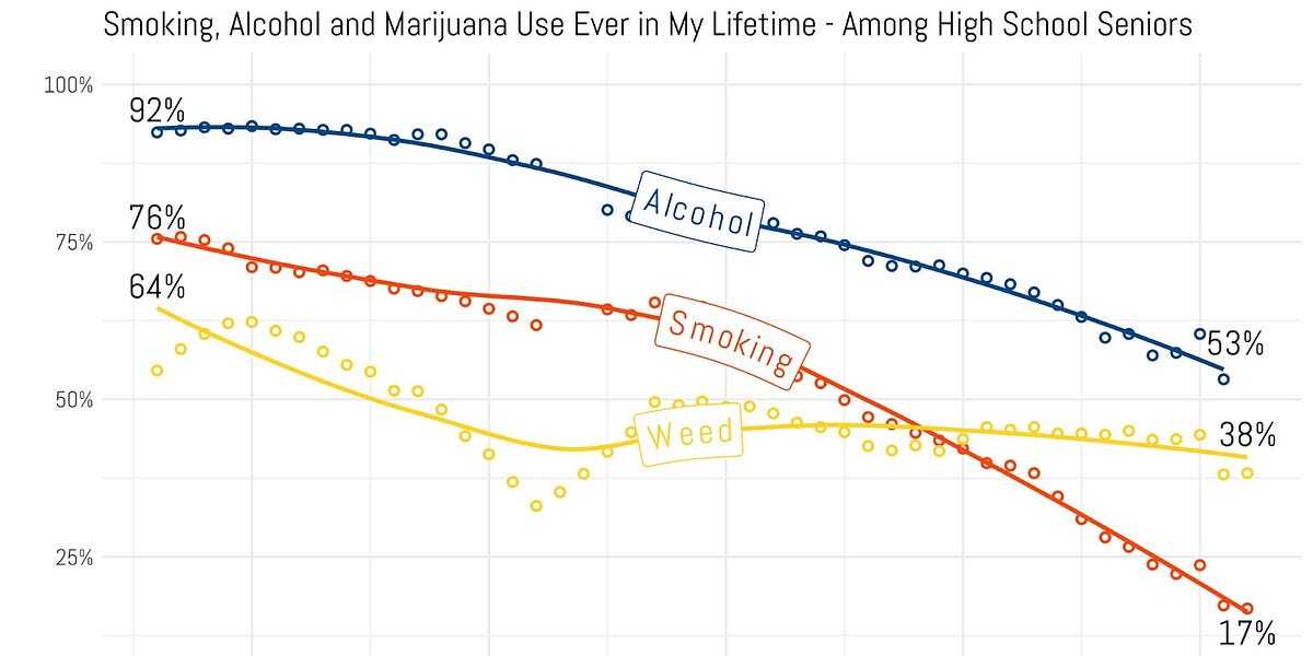 Ja, aber das ist halt absolut nichts im Vergleich zu den Zahlen der vergangenen Jahrzehnte. Da hattest du ja gigantische Raucherquoten und jeder kleine Anstieg jetzt bringt dich da noch lange nicht hin