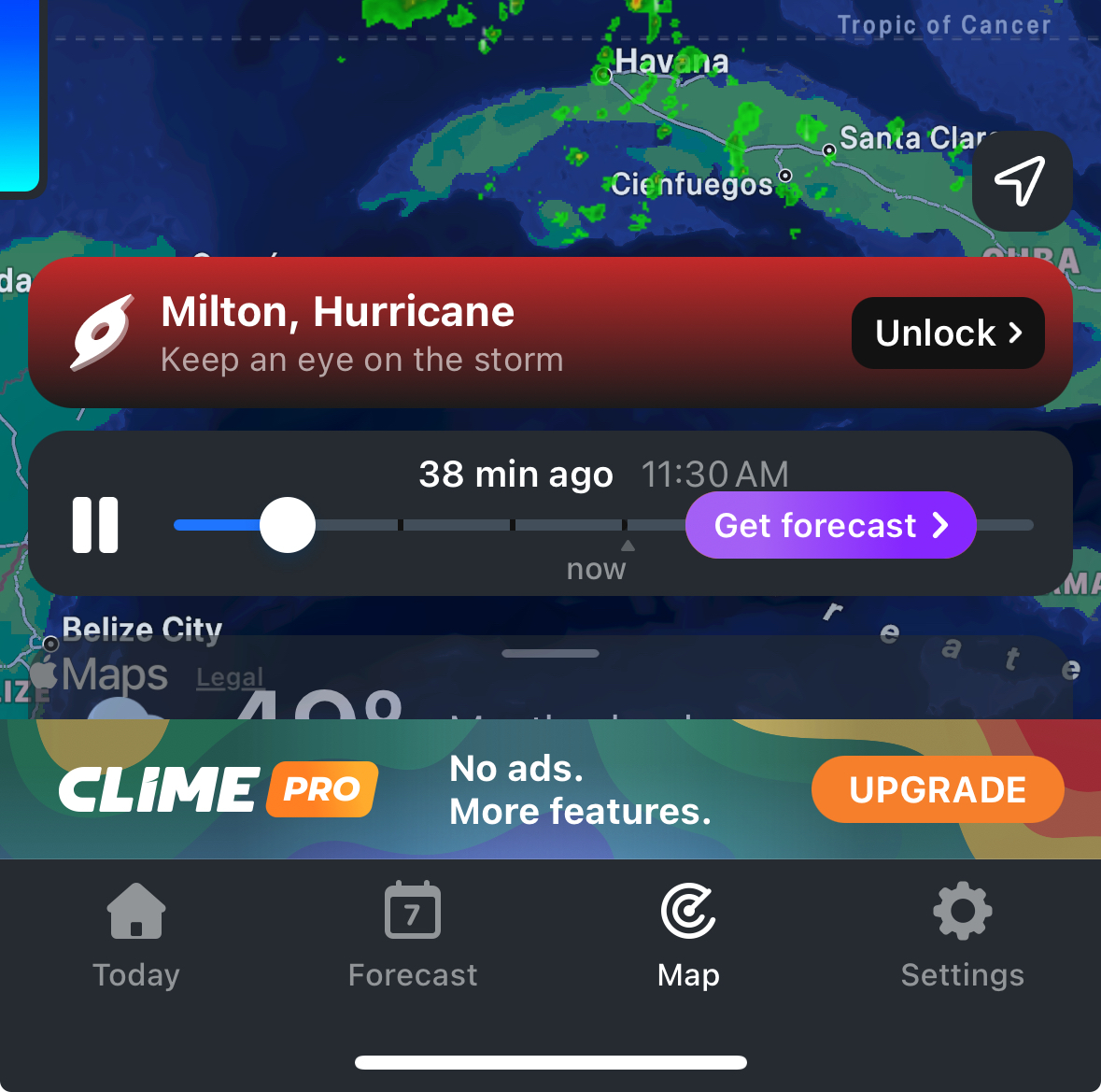 The app is Clime Pro on iOS, they lock full access to Hurricane Milton data behind a $10 USD per week paywall.
