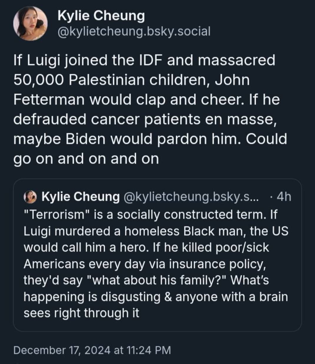 I’m watching the US government running interference for Israel and arresting students for being anti-genocide/ pro-Palestine. Legacy corporate media burying articles on Palestine and Israeli war crimes on US gov’t behalf. Legacy corporate media lying about weapons of mass destruction in Iraq as a pretense to invade and later laundering and resurrecting war criminal George W. Bush’s reputation after the war. Corporate media’s suppression of Biden’s senility while in office and now Jake Tapper is on a propaganda tour saying what everyone knew all along even though Democratic party insiders would straight up lie about it.